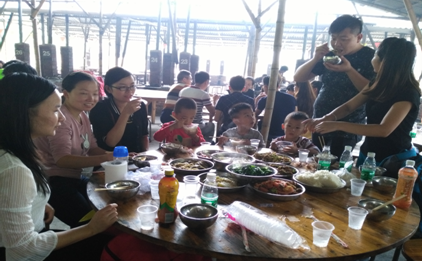 一起分享集體協作的成果,雞,魚,蝦,排骨等等,對了,還有餃子,像魔法一樣呈現在大家面前,話不多說,趕緊大快朵頤,下午還有更精彩的行程等著我們!