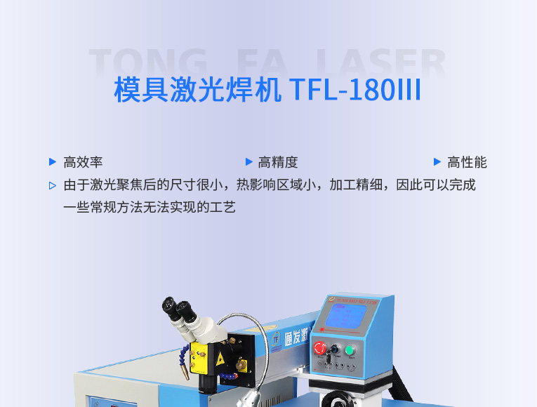 普通型模具激光焊機(jī)TFL-180Ⅲ是通發(fā)激光公司的模具激光焊機(jī)中銷量較大的傳統(tǒng)型,配置激光頭手搖升降與工作臺(tái)按鈕電動(dòng)升降實(shí)現(xiàn)焊接不同厚度模具的激光焊加工。本系列機(jī)型適用于各類精密注塑模具激光補(bǔ)焊、壓鑄模具激光修補(bǔ)焊接;同時(shí)也適合鑄件沙孔激光修補(bǔ)、模具磨損激光修復(fù)、過(guò)切加工等的激光修補(bǔ);各類金屬結(jié)構(gòu)件激光焊接加工、金銀首飾激光焊接加工。
