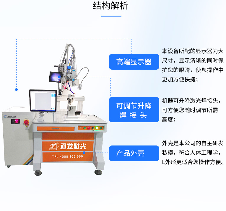 2、強大的PC控制,易于編程、調試和維護??赏瓿勺詣踊虬胱詣拥狞c焊、對接焊、疊焊、密封焊,針對復雜的平面直線、圓弧及任意軌跡的焊接。