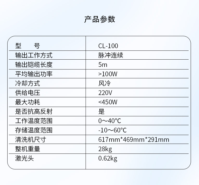 3、激光清洗頭極致輕巧,重量?jī)H 620g(不含鎧纜),可長(zhǎng)時(shí)間手持操作