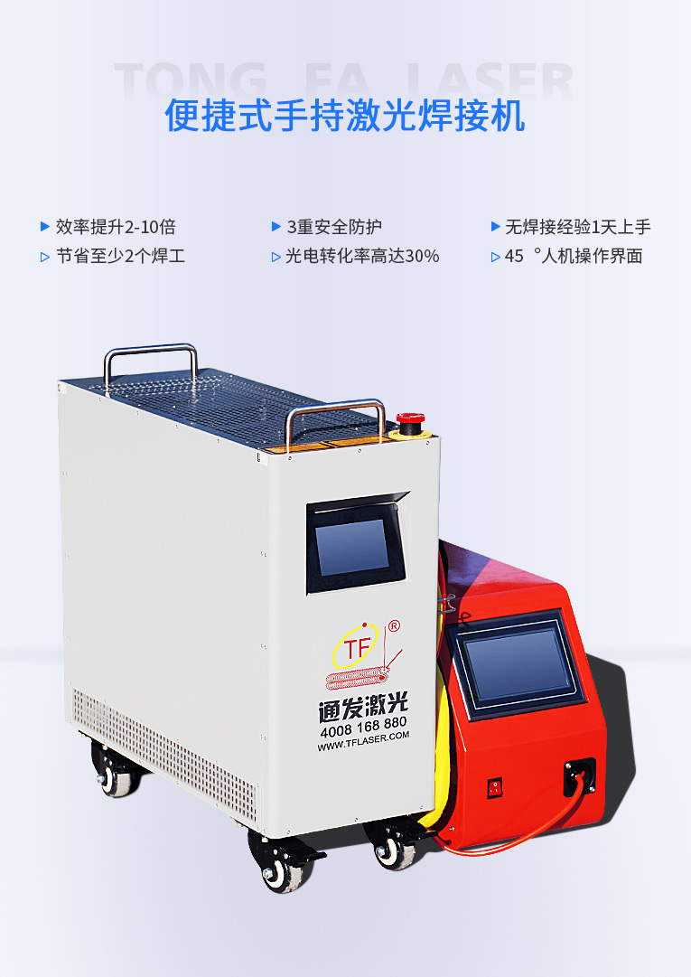通發激光便捷式手持激光焊接機,小巧便攜,方便移動,適合戶內外外工地移動焊接,是遠距離焊接大工件的全新焊接利器。
